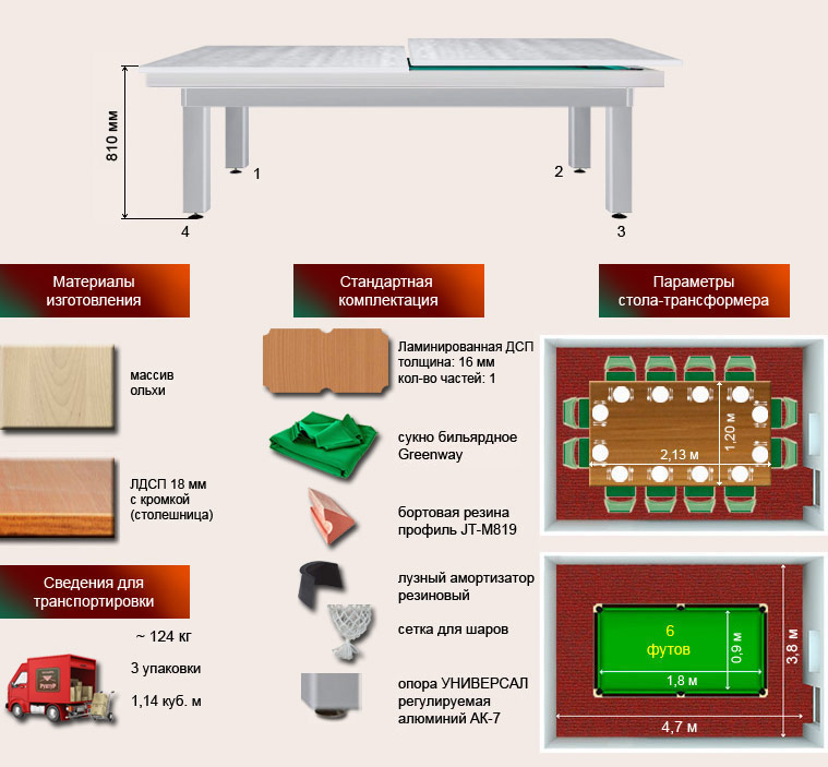 Стол бильярдный обеденный «Спартак» 6 футов, пирамида, ольха, ЛДСП - Вопрос-Ответ